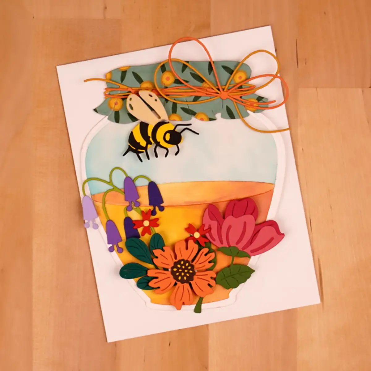 Use scraps from the vellum for the bee’s wings along with bright yellow and black cardstock.