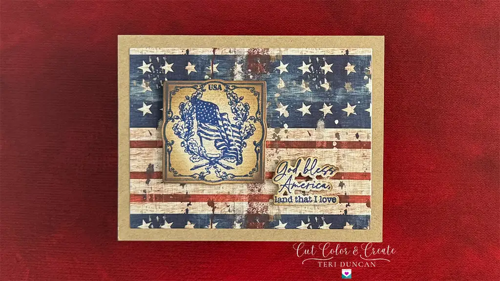 Pro Tip ✨: Layering your card base with one of the choices from the Americana Paper Pad instantly adds pizzazz! Use star patterns for a dynamic look or stripe designs for a classic touch. For my cards, I first add a kraft-colored panel that covers the card front. Then I die-cut my patterned paper with a rectangle die, and I use a tape runner for both of them.
